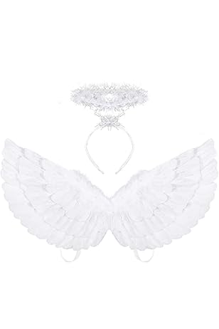 Amazon Com Angel Wings Adult Angel Costume For Kids Angel Wings And Halo For Christmas Eve Halloween Medium White Clothing Shoes Jewelry